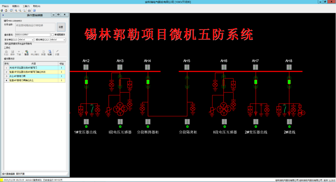 Acrel-2000电力监控系统与五防软件系统之间建立通信协议链接,当某一设备需要进行遥控操作时,首先进行五防规则判断(即防止误分、合断路器;防止带负荷分、合隔离开关;防止带电合接地开关;防止带地线送电;防止误入带电间隔)。符合五防规则后,则发送解锁命令至自动化监控后台,自动化监控后台进行遥控操作。五防软件可以模拟遥控步骤,形成操作票。