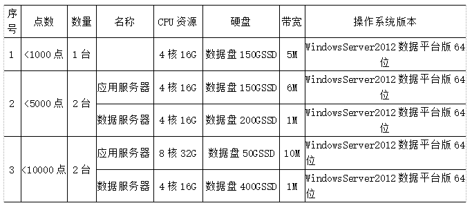 若客户自己租用阿里云服务器,服务器配置根据充电枪点数的不同,分别如下: