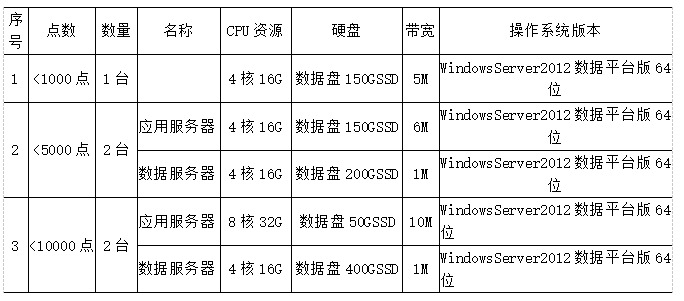 若客户自己租用阿里云服务器,服务器配置根据充电枪点数的不同,分别如下: