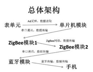 硬件的连接分为电位器到单片机系统,单片机到ZigBee模块1,ZigBee模块2到蓝牙模块这三个部分。