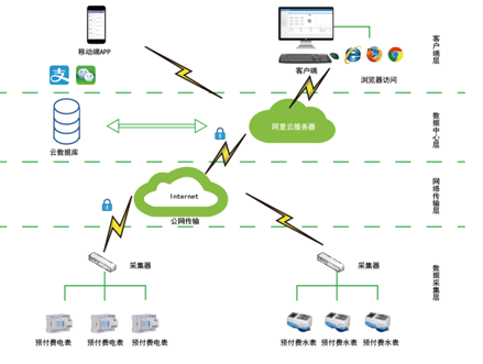 AcrelCloud-3200预付费水电云平台由云平台-网关-预付费电能表组成,通过通信网络完成系统到表的充值、查询、监控、控制及短信报警等功能。