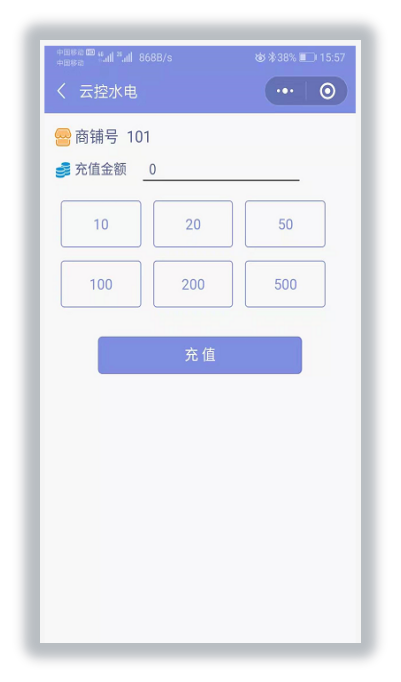 在线支付:商户可以通过小程序或者微信公众号实现在线自助充值水电费,也可以实时关注商铺用水用况。