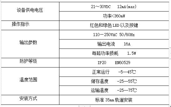 用于接受外部干接点信号输入,可通过不同参数配置实现开关、调光、场景、窗帘控制、调温、报警等功能,电气参数如下:
