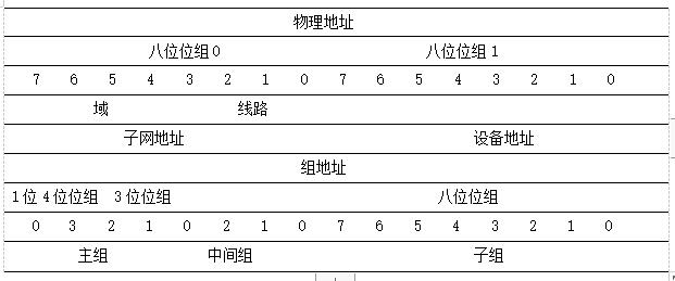 KNX硬件系统由系统元件、传感器和执行器三部分元件构成,采用KNX总线通信,设备之间以双绞线为传输介质,以KNX报文实现信息传递,其中报文结构包括控制字段、地址段、长度、实用数据等,控制字段控制报文是否重复、报文发送的优先级等。 地址段由源地址与目标地址组成,源地址为总线元件的物理地址,按照域一线路一总线元件的方式配置,每个物理地址均W一的,为总线元件之间区别的W一地址,用于系统调试、检测及维护。目标地址为总线元件的组地址,按照主组/中间组/子组方式 配置,用于连接传感器与执行器的功能。编程时传感器只能发送一个组地址命令,执行器可以接收多个组地址的命令,其结构如表l所示。长度字段记录实用数据的字节长度,实用数据段用于定义应用的不同功能,检验字节用于对报文执行奇偶校验。