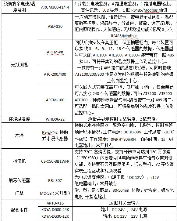设备级智能融合监控:一次、二次变电设备和变电运行环境监测,如:主变套管、穿墙套管等接头设备温度,避雷器的泄漏总电流、谐波电流和阻眭电流,变电站水浸、漏水报警,优化动力环境控制方案。