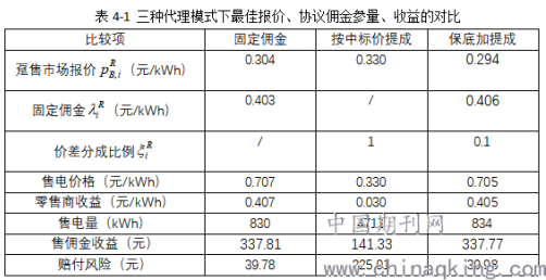 三种售电模式对于售电商而言,保底加提成是有利的,能获得高的收益,但其优势相对于固定佣金模式而言是微弱的;而对用户而言,按中标价提成是有利的,能获得低的售电价格。