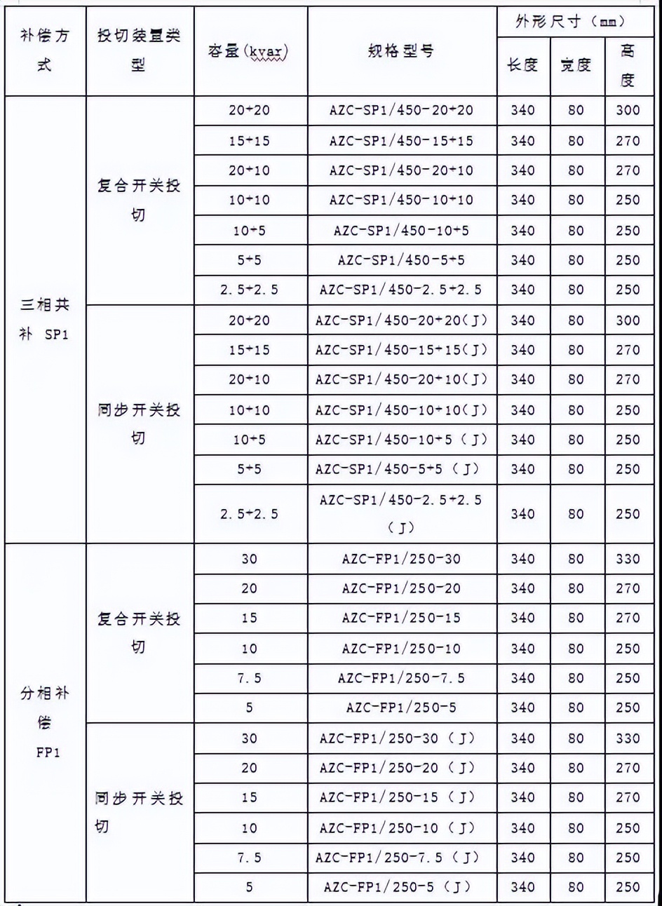AZC系列智能电容器选型: