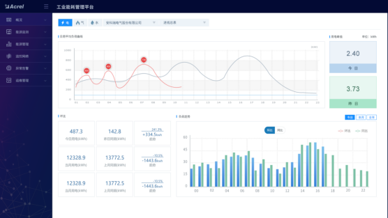 (2)能源使用分析: 统计、分析、对比单位时间内,单位产品能耗成本,分析能耗成本走势,杜绝能源浪费、提高能源使用效率,寻求成本更低的能源使用方案。