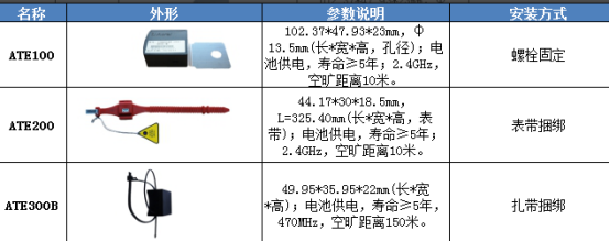 ASD300/320智能操控装置可连接12路无线温度传感器,ARTM-Pn无线测温装置可连接18路无线温度传感器,无源(CT取电)方式为ATE300(捆绑式安装),有源(电池供电)方式为ATE100(螺栓式安装,主要用于电缆/铜排等螺丝固定的搭接点)和ATE200(表带式,主要用于断路器触头等接点捆绑安装,因安装较ATE100更方便,电缆/铜排等搭接点也常选用)。