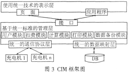 CIM(Common Information Model)框架的引入,可以很好地解决目前 NSM(Network and System Management)所面临的一些问题。具体地说,电动自行车自助充电管理系统使用标准的 CIM(Common Information Model) 信息架构,定义统一的功能架构,使得系统内的各个模块之间具有更好互操作性;并以之为基础,分析各个管理系统,剥离出核心功能,构建一些按照功能或服务划分的公共模块和核心模块, 就可以基于模块灵活地组合成特定需求的用户系统。