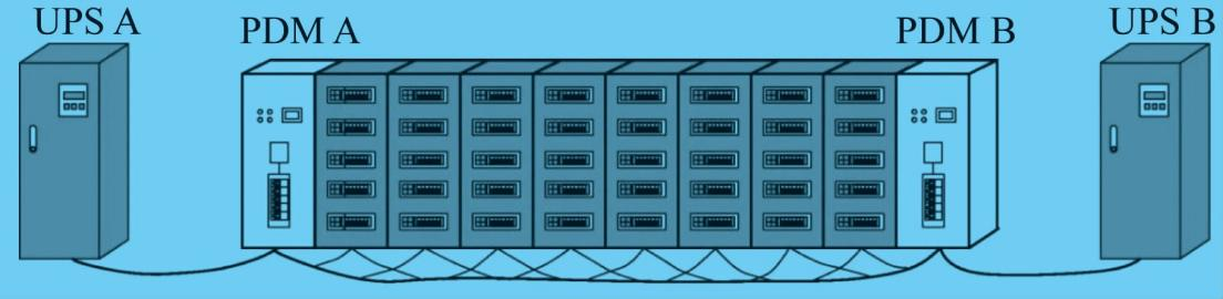 数据中心配电列头柜电力电缆拓扑图如图3所示。缺点:线缆地板下铺设工期长、难度大,且后期检修、管理困难;列头柜空间有限,后期变更的灵活性较差;线缆密集铺设,容易聚集温升,有火灾隐患;线缆架空地板下铺设,影响制冷效果;列头柜占用机柜位置,造成土地成本浪费。