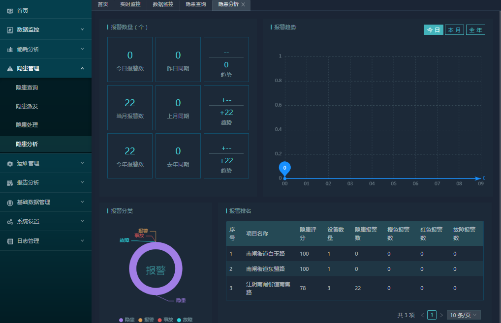 隐患管理包括隐患巡查、隐患派发、隐患处理、隐患分析