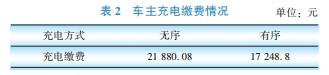 由表2可知,无序充电车主日缴纳电费为21880.8元,基于多时段动态电价的有序充电日缴费为17248.80元,比无序充电费用降低了21.17%。因此新电价机制的提出可有效降低车主充电成本。