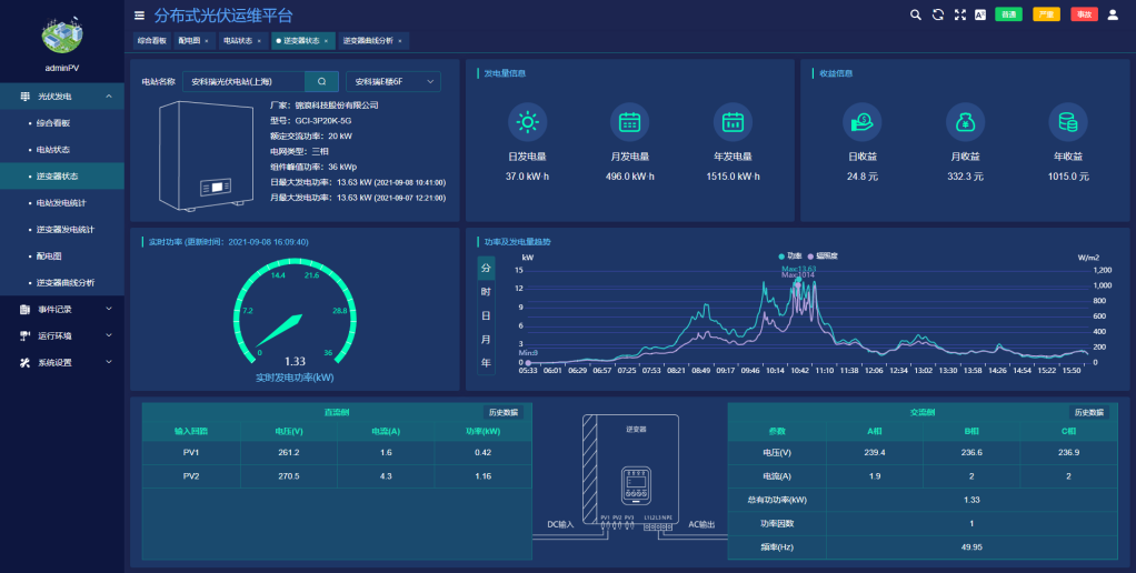 ●实时展示逆变器交、直流侧的数据。