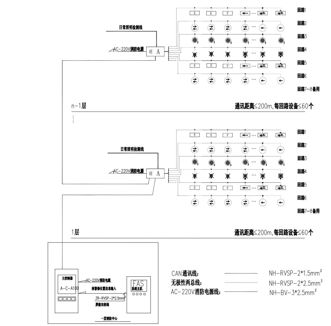 (1)配电回路按防火分区、同一防火分区的楼层设置配电回路;