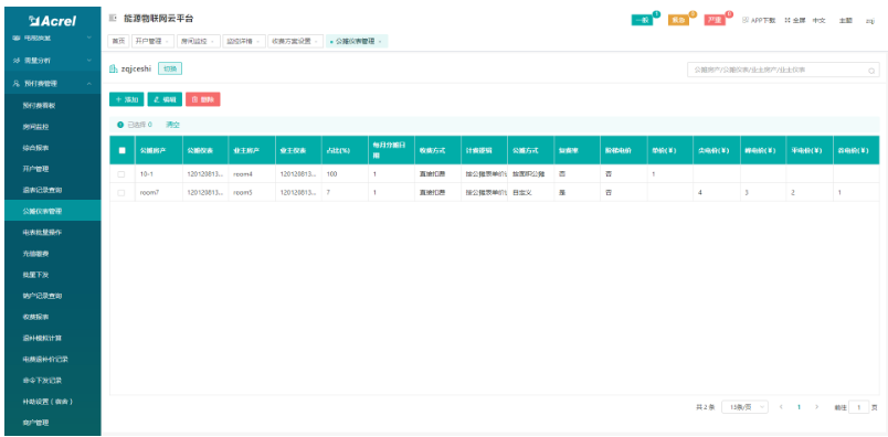 某块表为主表,然后分配关联子表,系统每个月自动将主表的用电按比例换算成电费从子表中扣除,这样可以剩余人工统计的麻烦。公摊方式多样,可以根据比例公摊,按房间面积公摊,按用量公排,收费方式有直接扣费或者生成维费账单。