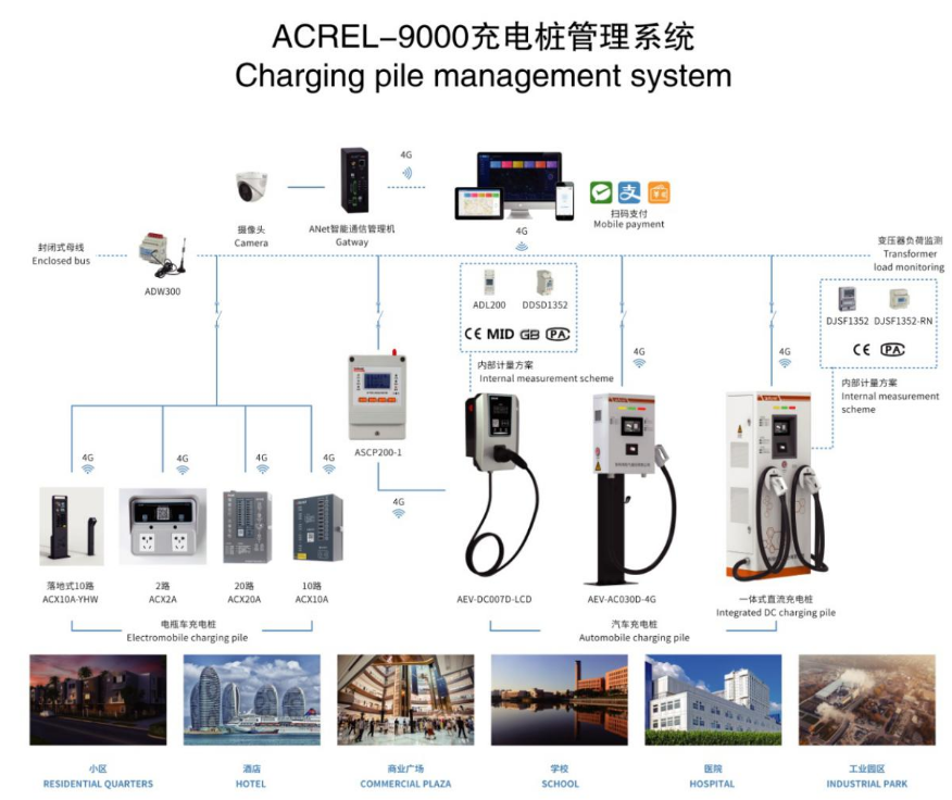 AcrelCloud-9000开云官方端网站登录入口充电桩收费运营云平台系统通过物联网技术对接入系统的汽车充电站、电动自行车充电站以及各个充电桩进行不间断地数据采集和监控,实时监控充电桩运行状态,进行充电服务、支付管理,交易结算,资源管理、电能管理、明细查询等,同时对充电机过温保护、漏电、充电机输入/输出过压、欠压、绝缘低各类故障进行预警;充电桩支持以太网、4G或WIFI等方式接入互联网,用户通过微信、支付宝、云闪付扫码充电。