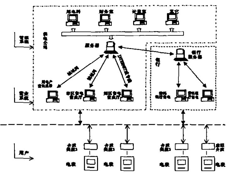典型的预付费用电管理系统拓扑结构图1所示,该系统软件分为营业子系统和数据管理子系统