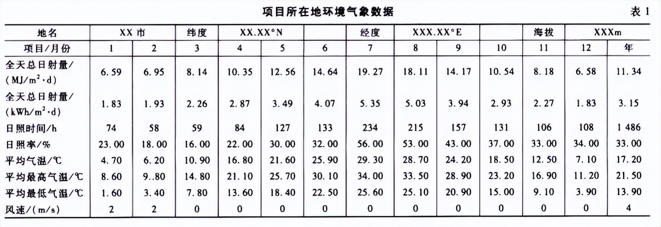 根据以上气象数据并结合现场的其他各种情况,设计的系统参数如下文所示。
