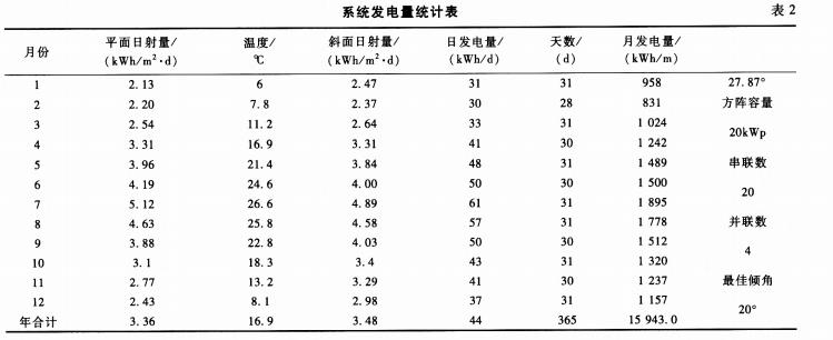 系统发电量统计如表2所示。