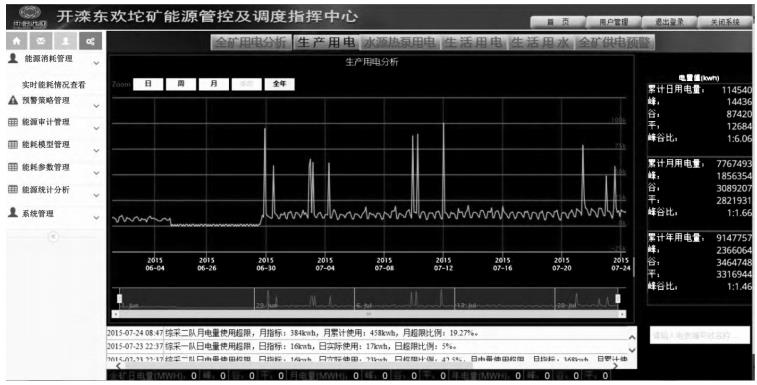 为了有效降低电能消耗,提高设备运行效率,某煤矿利用电能管理系统,对全公司生产、生活用电进行Q方位自动监测和数据分析,即采用强化用电定额的管理,合理进行电能调度,做好调荷避峰工作,促进电能资源的优化配置,以提高负荷率、用电峰谷比和功率因数,降低各种损耗,减少电费开支。
