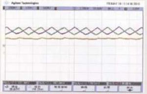 图2中绿色和紫色的波形是单套逆变器工作时产生的纹波,黄色为两套逆变器交错后产生的纹波,从示波器监视的波形来看,交错技术的运用可以大大降低有源滤波器的纹波,大大释放了纹波对电流跟踪速度和开关频率的束缚。