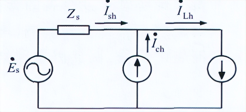 先检测出补偿对象的电流瞬时值,随后通过指令电流运算电路得出谐波补偿电流的指令信号。该信号控制变流器产生的补偿电流可抵消负载电流中的谐波成份及无功电流,*终获得期望的电源电流。其补偿谐波的等效电路图如图2所示