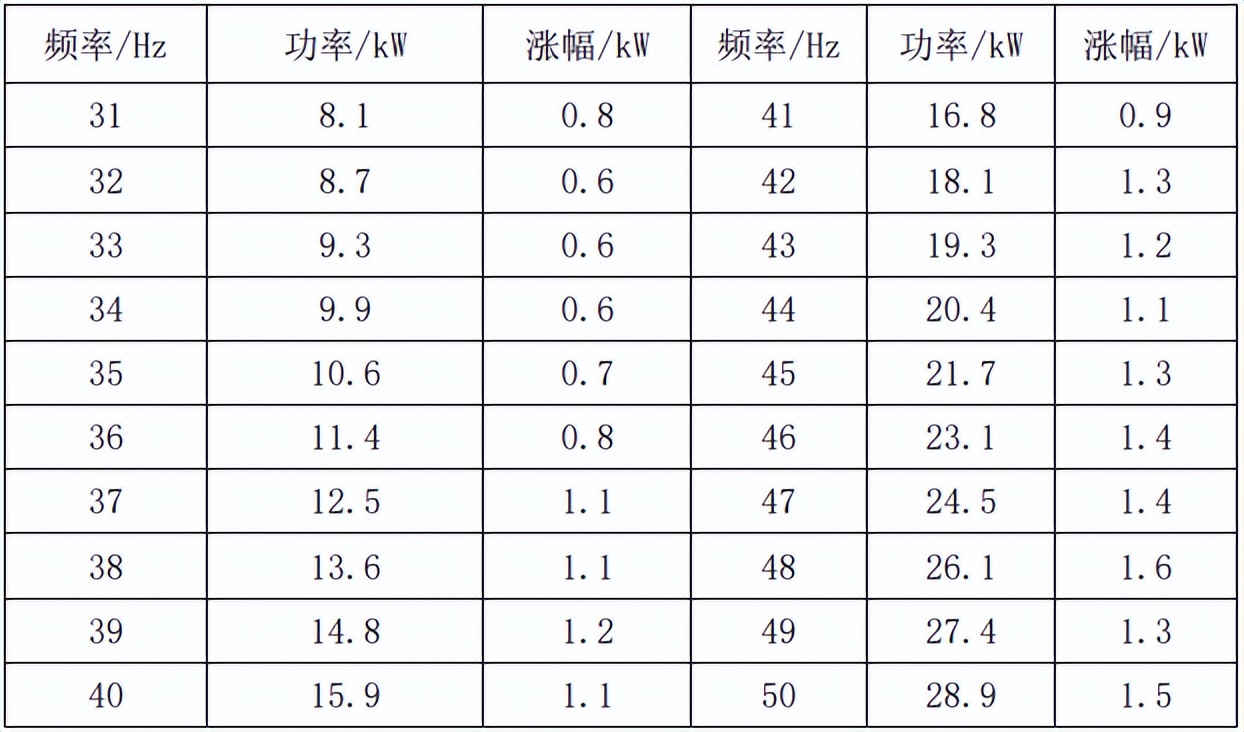 表4风机不同频率下实测能耗对比