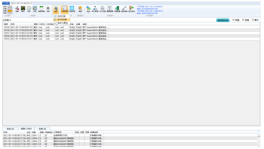 可查看历史操作、故障、事件信息、可按日期进行查询。