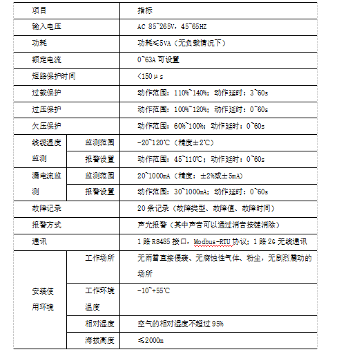 F)漏电流监测功能,线路漏电超过报警设定值时,保护器告警或限流保护(可设);