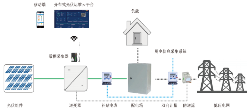 部分小型光伏电站为自发自用,余电不上网模式,这种类型的光伏电站需要安装防逆流保护装置,避免往电网输送电能。光伏电站规模较小,而且比较分散,对于光伏电站的管理者来说,通过云平台来管理此类光伏电站非常有必要,开云官方端网站登录入口在这类光伏电站提供的解决方案包括以下方面: