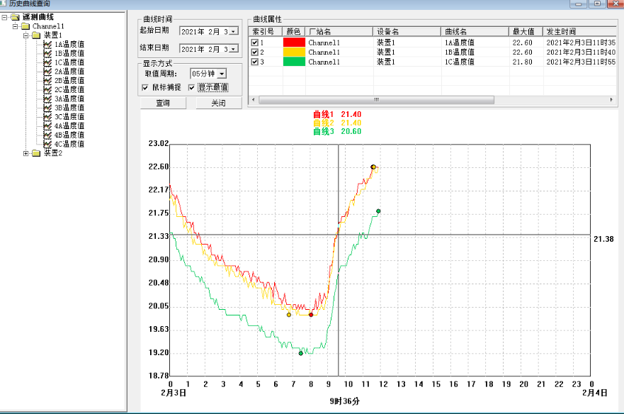 温度曲线:查看每个测温点的温度趋势曲线。