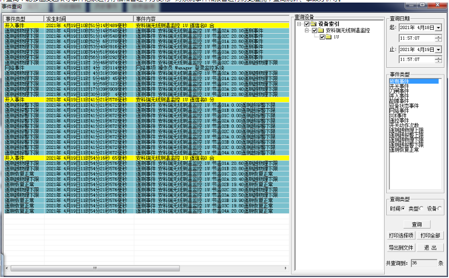 历史事件查询:能够温度越限等事件记录进行存储和管理,方便用户对系统事件和报警进行历史追溯,查询统计、事故分析等。