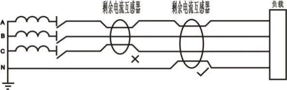 其余接线型式需要改造成以上两种型式使用,防止出线误动作或者不动作的情况。剩余电流互感器的选择应根据主回路的额定电流为参考选择,