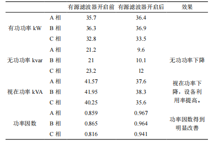 表2有源滤波装置开启前后功率以及公功率因素平均值
