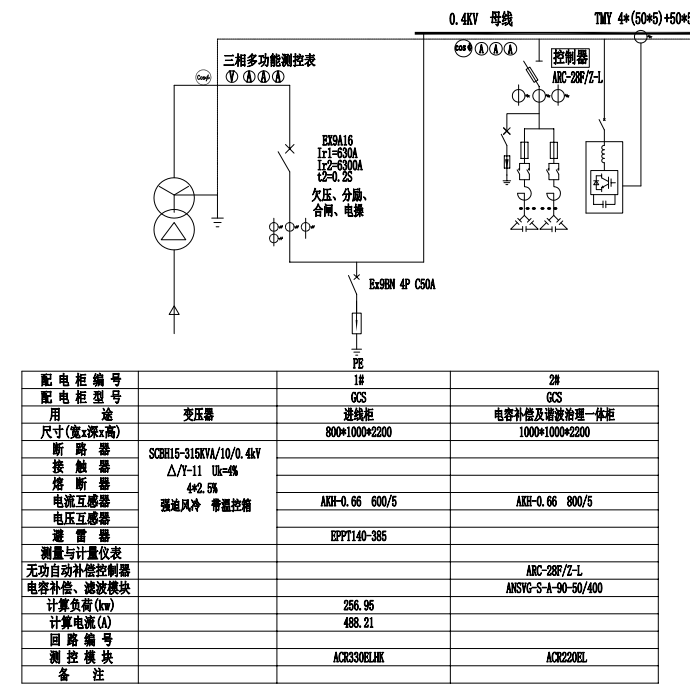 本工程10kV/0.4kV配电工程共有24个变电所,以香炉寺隧道变电所为例,上图方案如下: