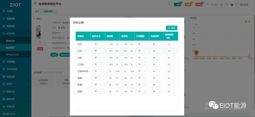 系统可接入用电精灵和智能微断等,用户可查询对应设备的状态;