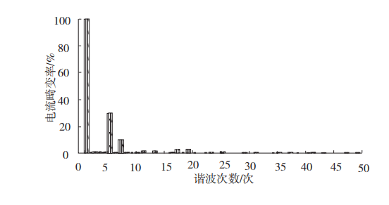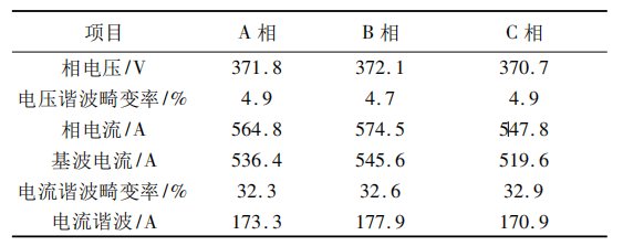 可见,系统电流波形已发生严重畸变,电流畸变率已超过30%,其中以5次、7次谐波为主。