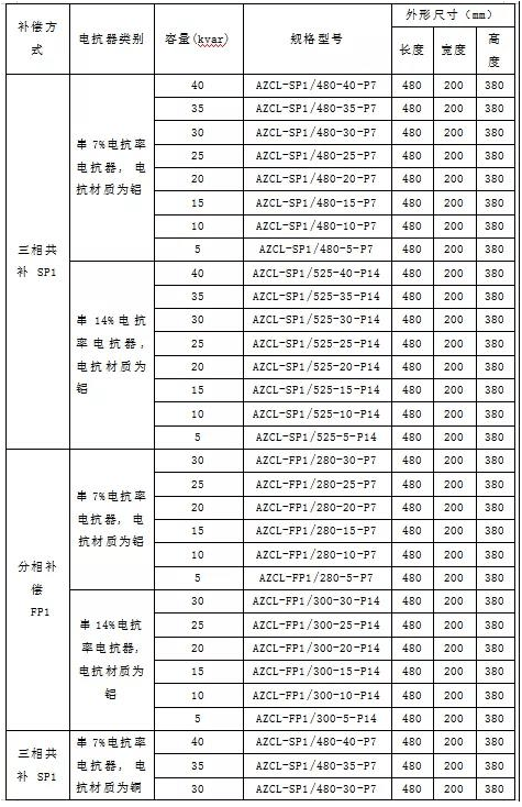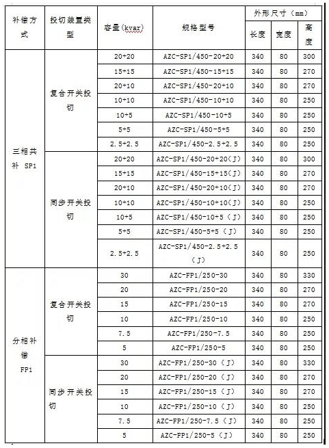 AZC系列智能电容器选型: