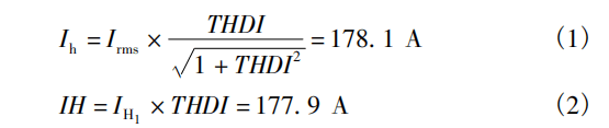 由表1中基本数据可知,B相谐波电流*大,把B相电流Irms=574.5A,B相基波电流IH1=545.6A,B相电流畸变率THDIb=32.6%代入计算公式: