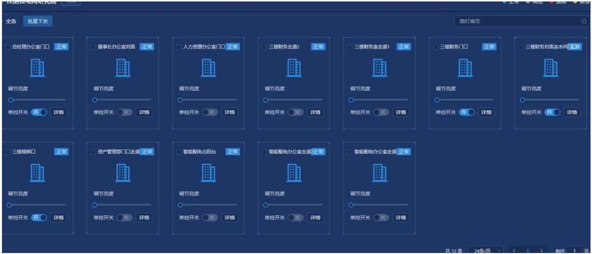 智能照明通过物联网技术对安装在城市各区域的室内照明、城市路灯等照明回路的用电状态进行不间断地数据监测,也可以实现定时开关策略配置及后台远程管理和移动管理等,降低路灯设施的维护难度和成本,提升管理水平,并达到一定节能减挂的效果。