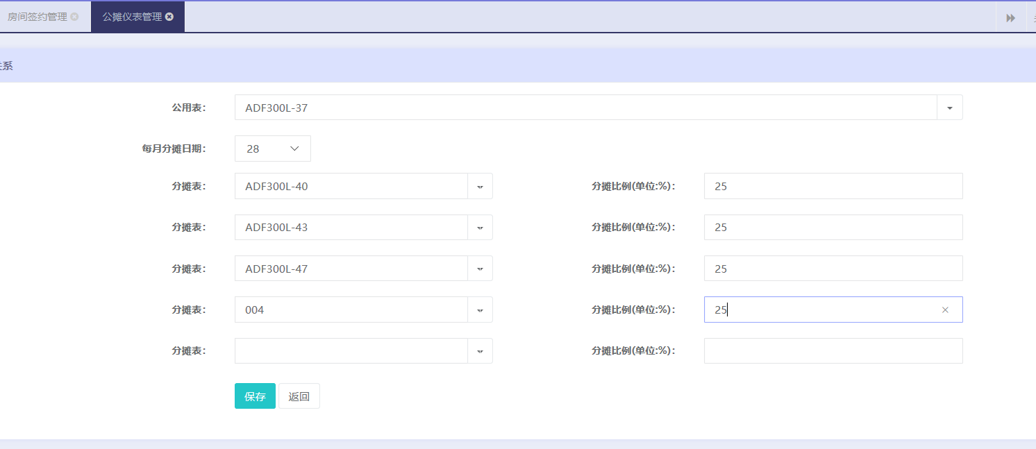 Z定某块表为主表,然后分配关联子表,系统每个月自动将主表的用电按比例换算成电费从子表中扣除,这样可以剩余人工统计的麻烦。