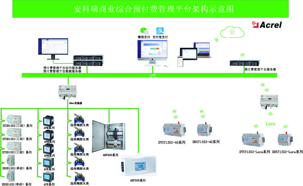 商业中心的能源消耗比重较大,商业用楼的节能问题正越来越受到人们的重视。传统方式的抄表管理人工成本高、抄表数据易出错、还常常面临追缴费困难的问题。商业预付费系统有效的解决了以上问题,还通过对能源数据的集中统一采集、对比、分析提高能源利用率,实现高效的节能,提高经济效益的同时提升办公楼整体形象。该系统采用后台自动和手动拉合闸操作,采用短信通知等人性化管理手段提前通知用户缴费,支持微信支付宝等多种缴费方式,使得预付费管理灵活可靠。 同时后台自动生成账单,并进行用电分析,大大提高了用能的智能化管理。本系统充分满足了用户的差异化用能环境和管理需求,是经济和实用的用能收费管理系统。