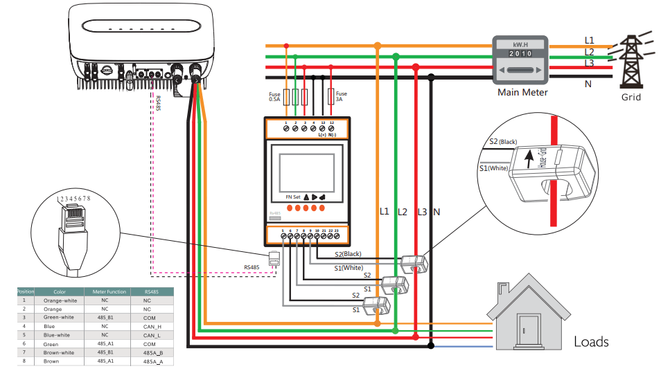 部分光伏电站并网点需要监测并网点电能质量,包括电源频率、电源电压的大小、电压不平衡、电压骤升/骤降/中断、快速电压变化、谐波/间谐波THD、闪变等,需要安装单独的电能质量监测装置。部分光伏电站为自发自用,余电不上网模式,这种类型的光伏电站需要安装防逆流保护装置,避免往电网输送电能,系统图如下。