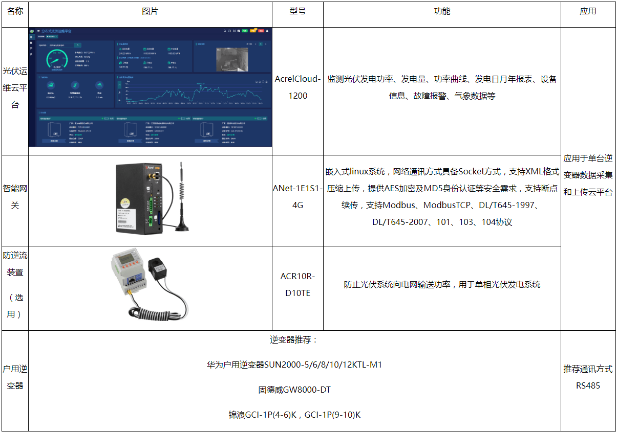 部分小型光伏电站为自发自用,余电不上网模式,这种类型的光伏电站需要安装防逆流保护装置,避免往电网输送电能。光伏电站规模较小,而且比较分散,对于光伏电站的管理者来说,通过云平台来管理此类光伏电站非常有必要,开云官方端网站登录入口在这类光伏电站提供的解决方案包括以下方面: