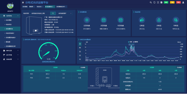 ●显示所有光伏电站的数量,装机容量,实时发电功率。