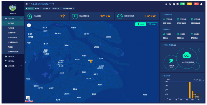 ●显示所有光伏电站的数量,装机容量,实时发电功率。