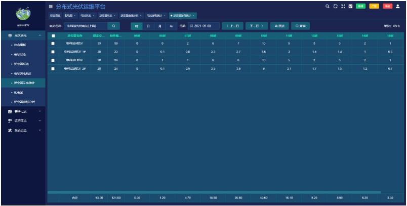●统计当前光伏电站的日、月、年发电量及发电收益。