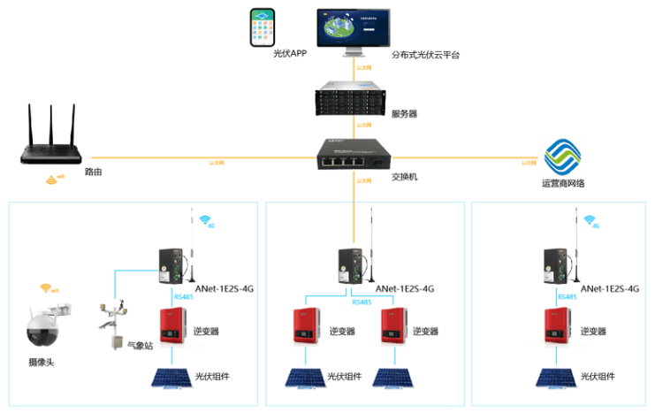 部分小型光伏电站为自发自用,余电不上网模式,这种类型的光伏电站需要安装防逆流保护装置,避免往电网输送电能。光伏电站规模较小,而且比较分散,对于光伏电站的管理者来说,通过云平台来管理此类光伏电站非常有必要,开云官方端网站登录入口在这类光伏电站提供的解决方案包括以下方面: