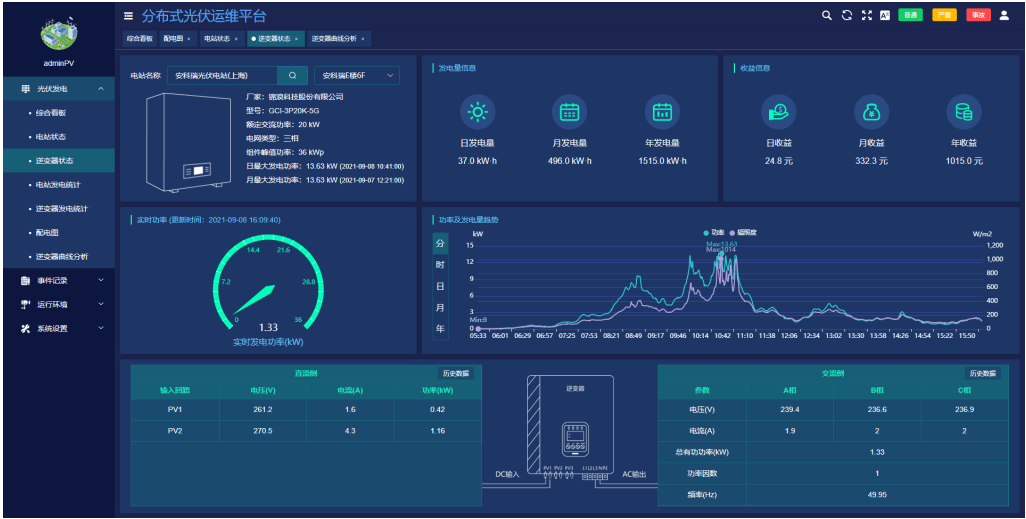 ●实时展示逆变器交、直流侧的数据。